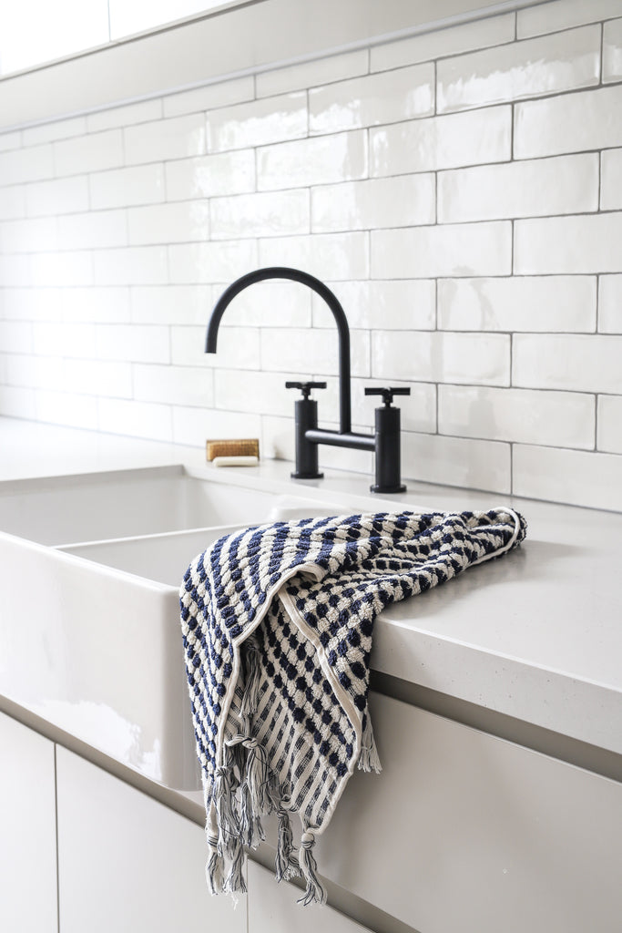 This hand towel is made the old fashioned, slow way in Turkey. Hand loomed using traditional weaving methods by small groups of artisans, with the tassels tied by hand by elderly women in the village.